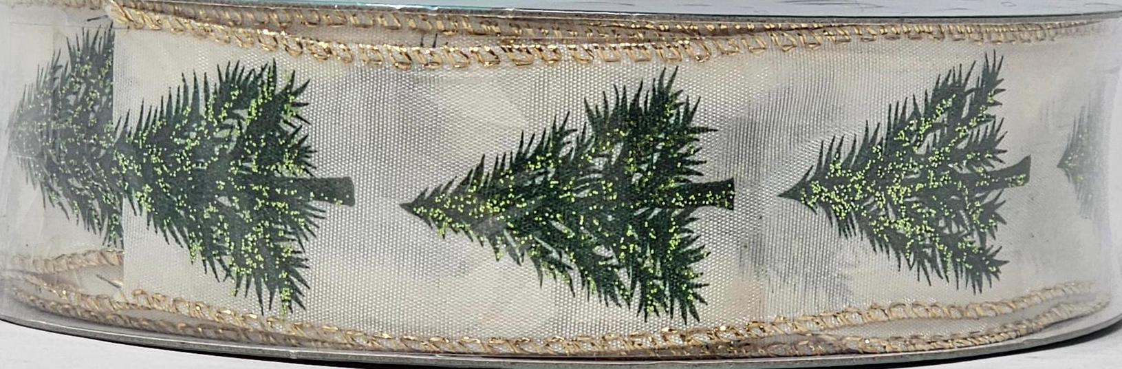 Crafted with precision and quality in mind, this ribbon adds a touch of sophistication to your DIY endeavors. The Christmas Trees on Ivory w/Gold trim brings a sense of luxury and warmth, making it an ideal choice for festive holiday decorations. Whether you're embellishing gifts, decorating wreaths, or adding a finishing touch to seasonal projects, this wired edge ribbon is sure to make a statement.