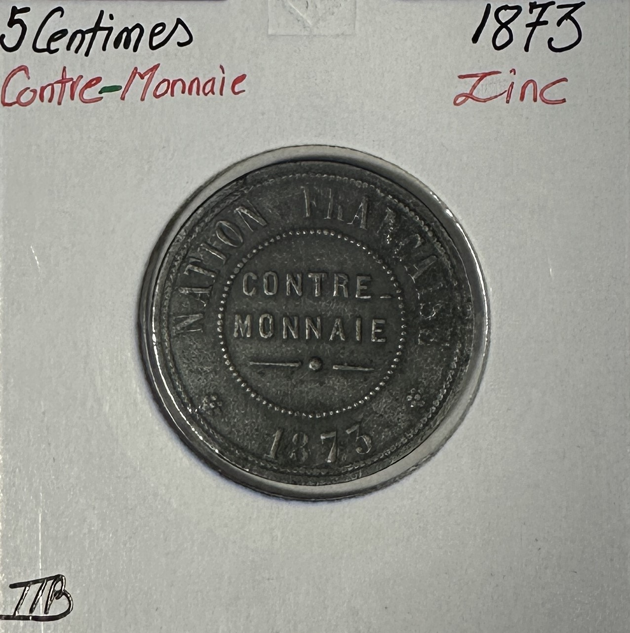 5 CENTIMES - CONTRE-MONNAIE EN ZINC DE 1873 // Qualité : TTB