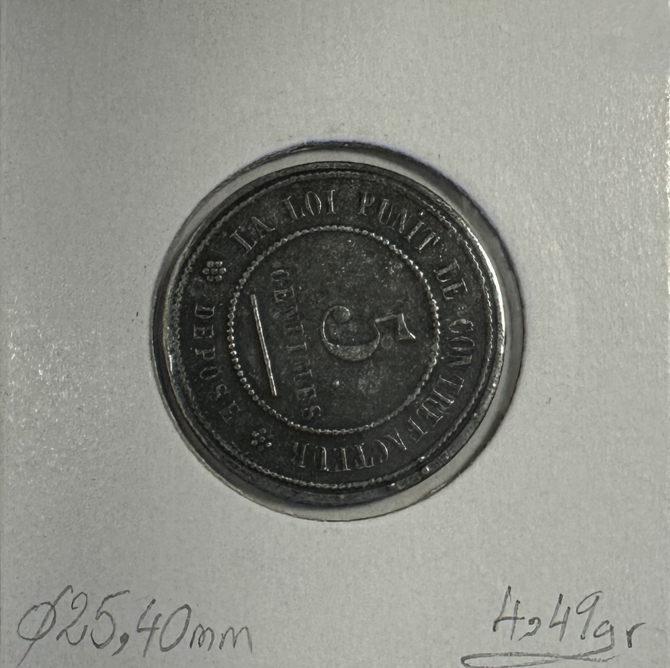 5 centimes, contre-monnaie