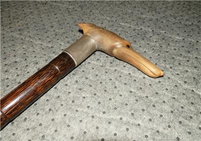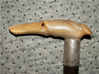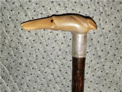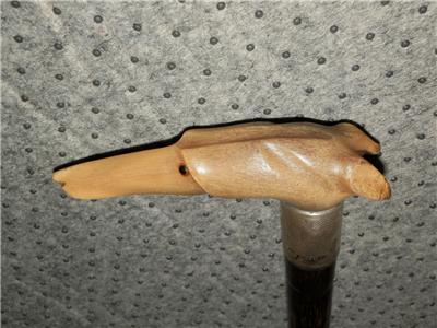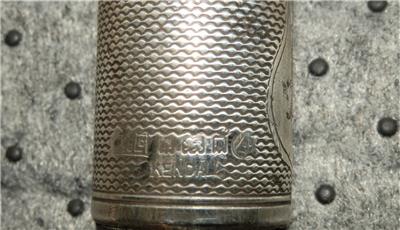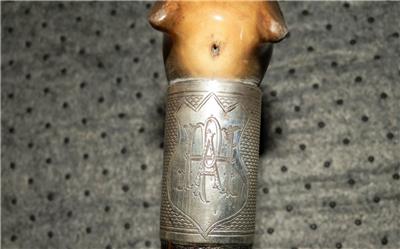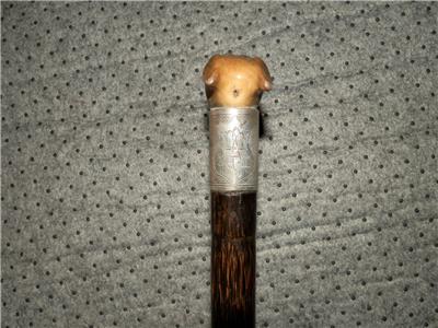 Below the dogs head handle, is a hallmarked machine rolled pattern silver collar with the hallmarks and initials -