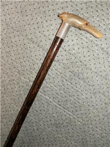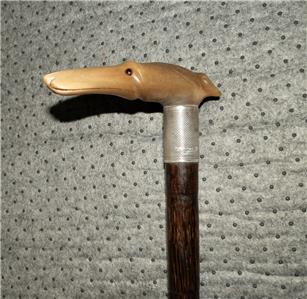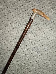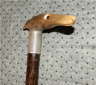 This stick Kendall walking stick has been skillfully made, the bovine horn handle has been carved into a Lurcher/Greyhound dogs head with inset, sharp glass eyes.