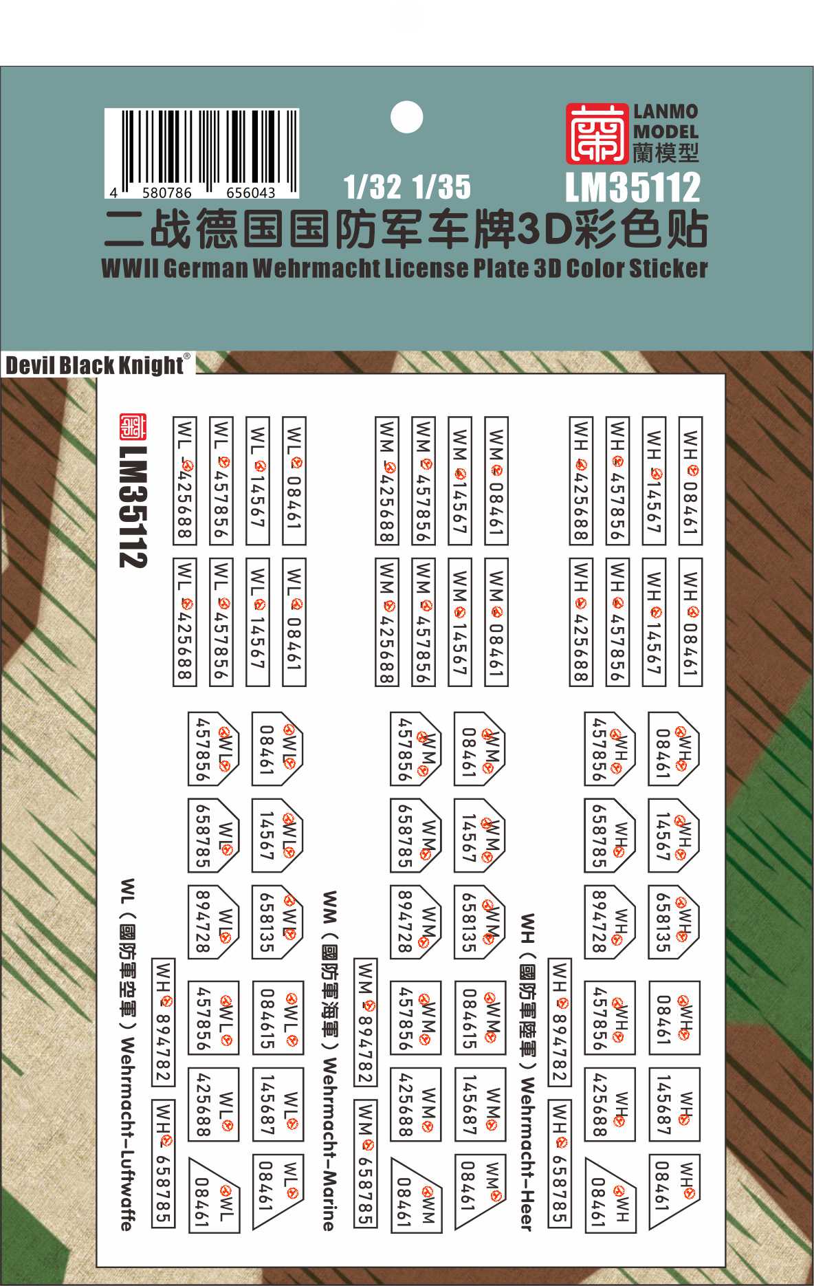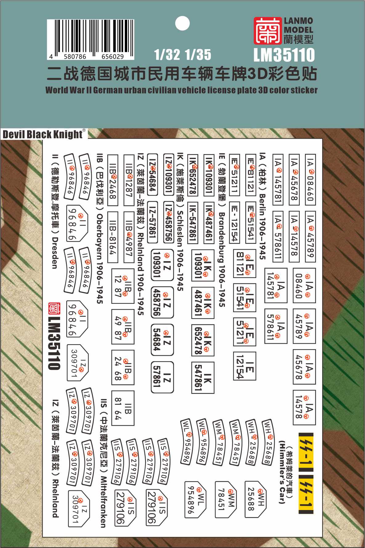 Heavy Hobby 35008-112 1/35 WWII Military Vehicle License Plate 3D Color Sticker