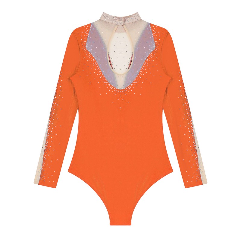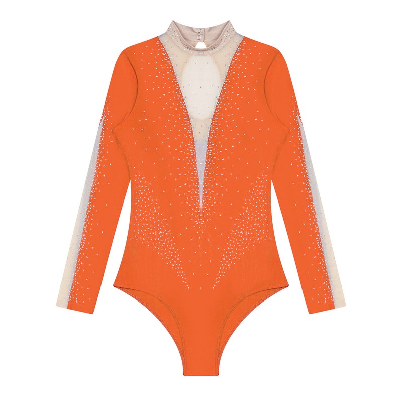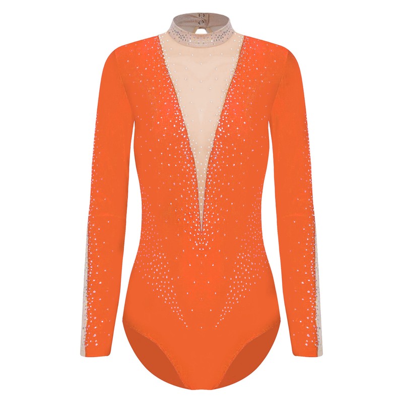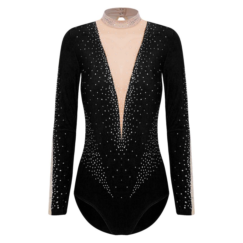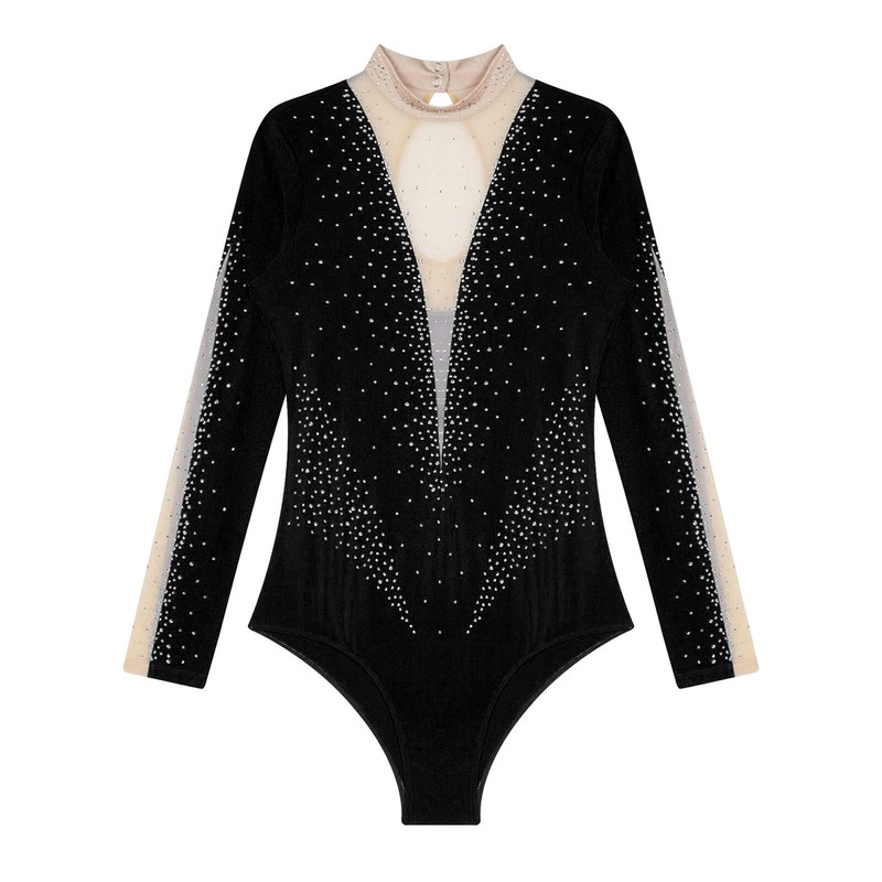 Women’s long sleeve dance leotard with shiny rhinestones brightens up any performance and makes you eye-catching in the crowd.