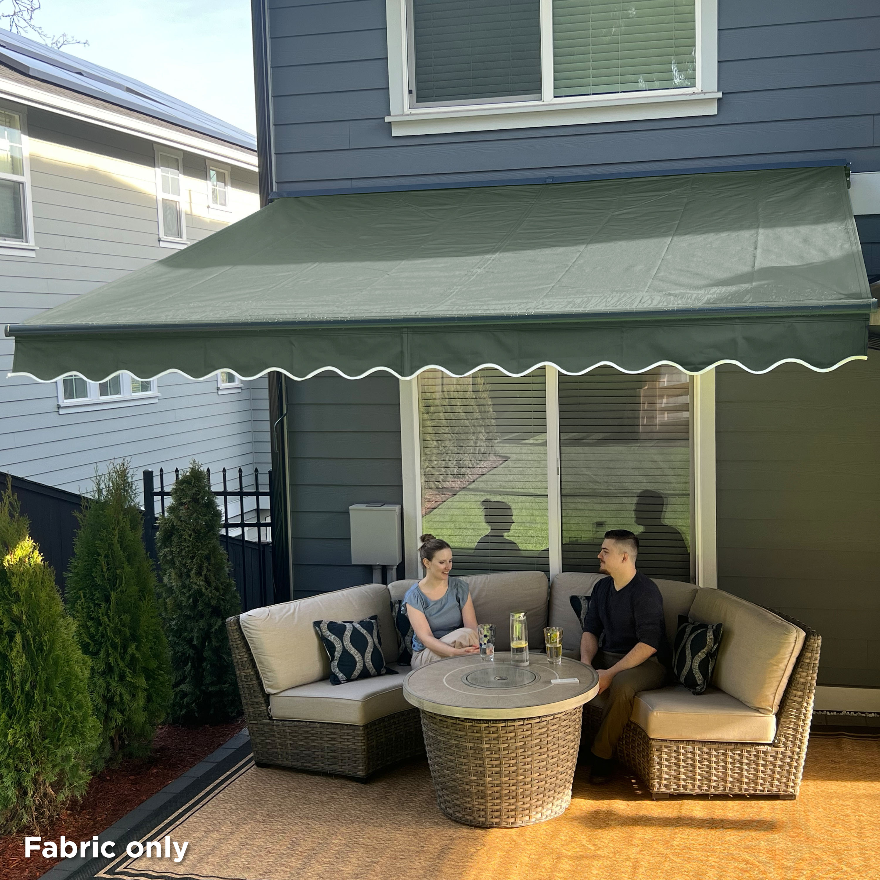 Upgrade your outdoor space with ease. This Replacement Awning Fabric can be used to update old fabric or refresh your awning color for a new look. The fabric is both UV-resistant and breathable, helping you stay protected from the harsh UV rays without losing optimal airflow. On a drizzly day, the fabric water-resistant material helps you stay dry. Fabric replacement for retractable Awnings is compatible with almost all other awnings brands.