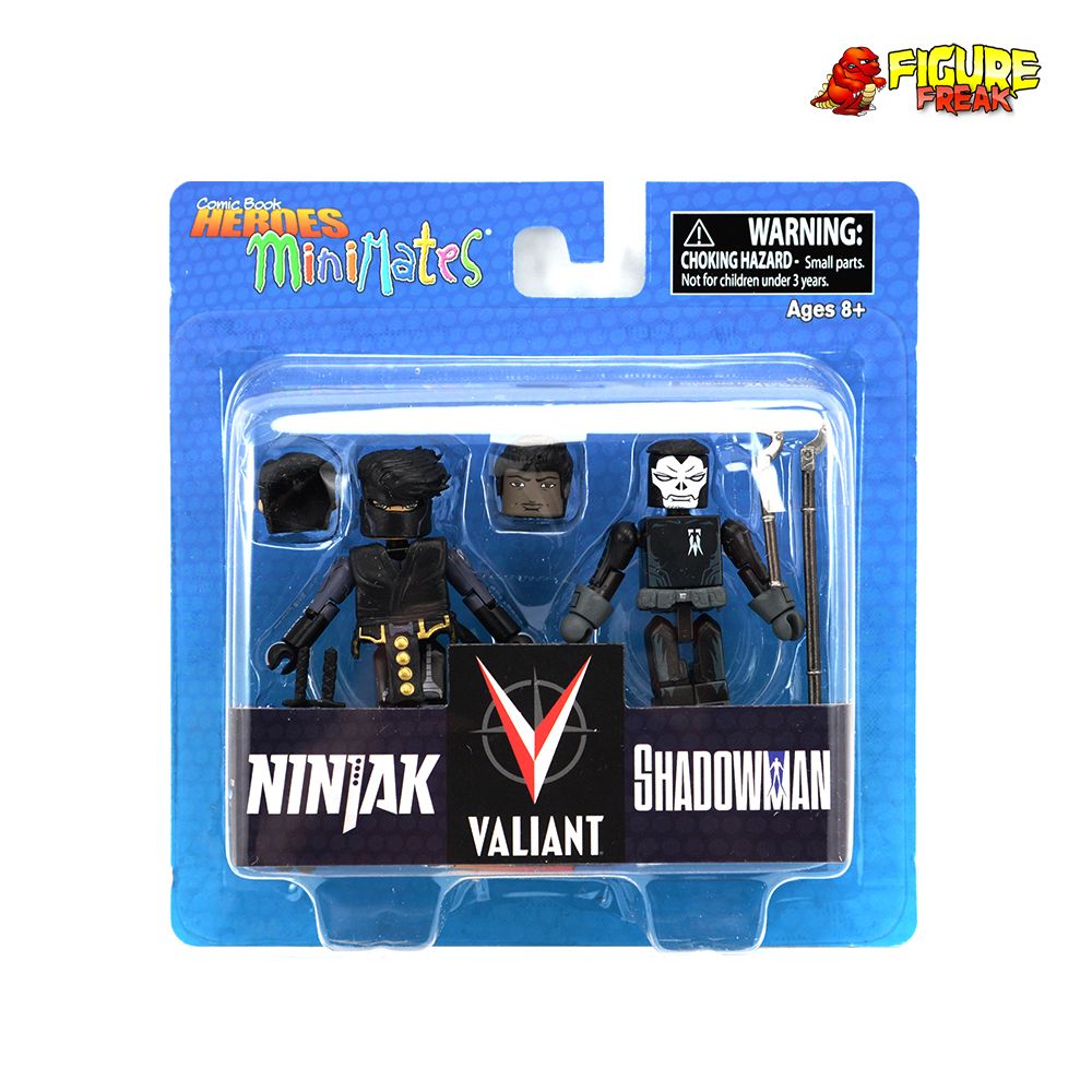 From Comic Book Heroes Minimates Series 1... minty fresh sealed Valiant Comics Ninjak & Shadowman 2-pack. A Diamond Select Toys release!From the world of your local comic shop, it's the first assortment of Comic Book Heroes Minimates, based on some of the most popular independent titles around! Four different two-packs pair up heroes and heroines from six different comics! From Image Comics, Cassie Hack from Hack/Slash teams up with Em Cypress from Revival! From the world of Valiant Comics, Ninjak takes on Shadowman! From Image's Chew, FDA agent Tony Chu partners with cyborg John Colby and the fighting rooster Poyo! And from Battle Beasts, Ruminant the Giraffe takes on Spyrnus the Hammerhead Shark! Each two-pack comes on a full-color blister card. Designed by Art Asylum!