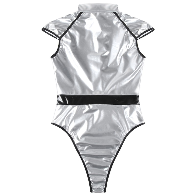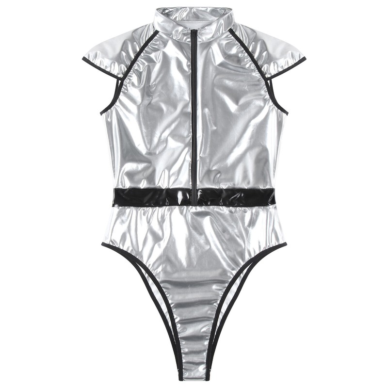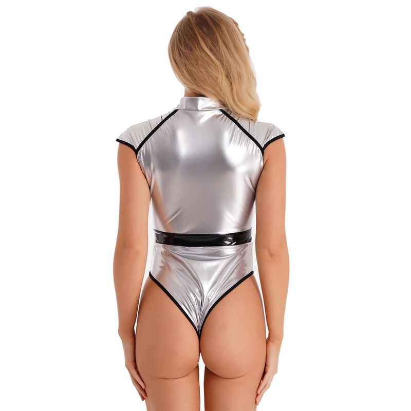 Women's Bodysuit Metallic Shiny Cosplay Costume Raves Party Jumpsuit Clubwear