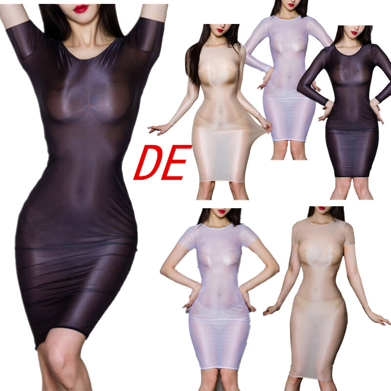 Oblique Schulterumfang Langarm-Tanzkleid, durchsichtiges Mesh-Patchwork, unregelmäßiger Saum mit Quaste.