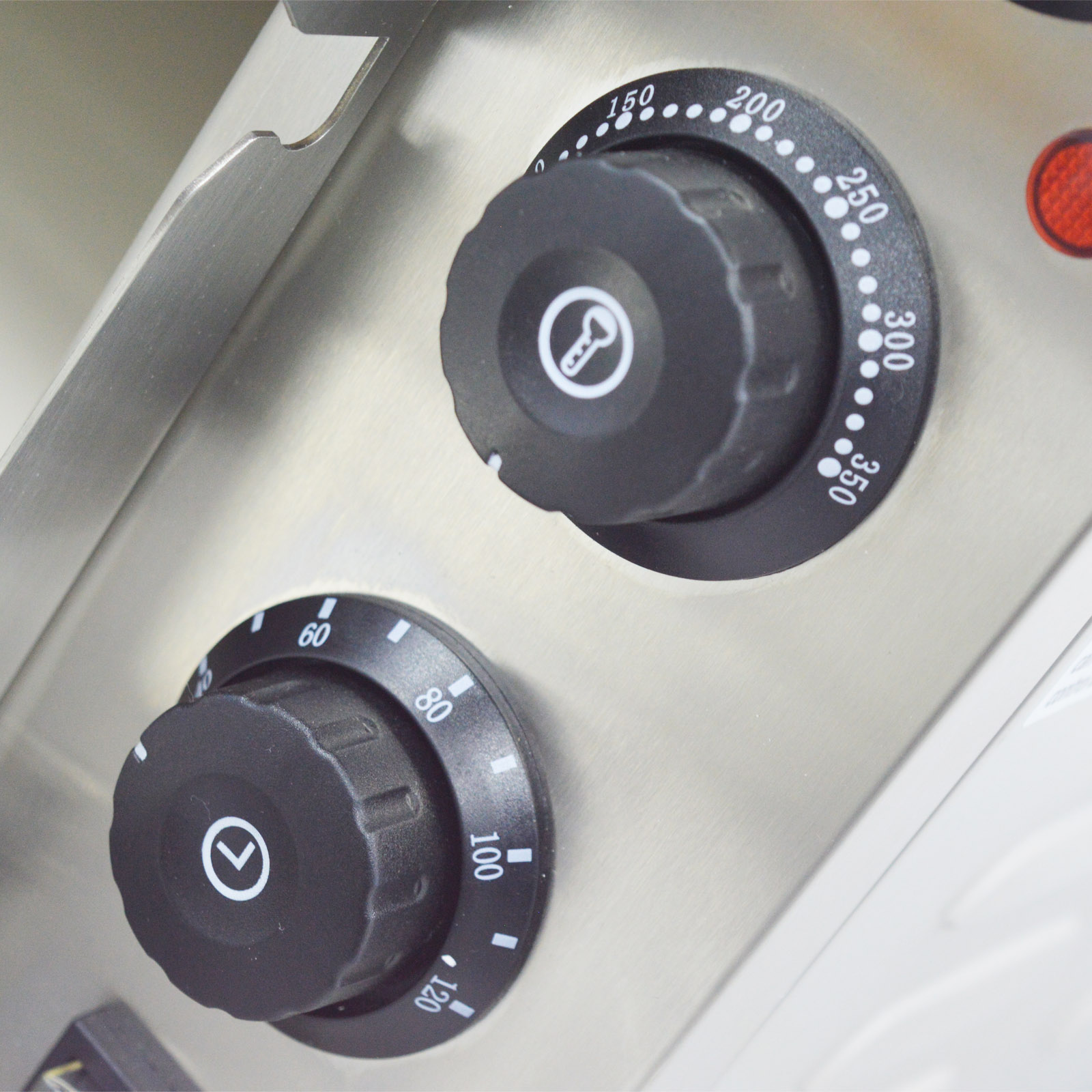 | Control panel integrated timing and three heating switches, timing range of 0-120min, heating temperature range of 50-350C , flexible, simple and convenient operation. |