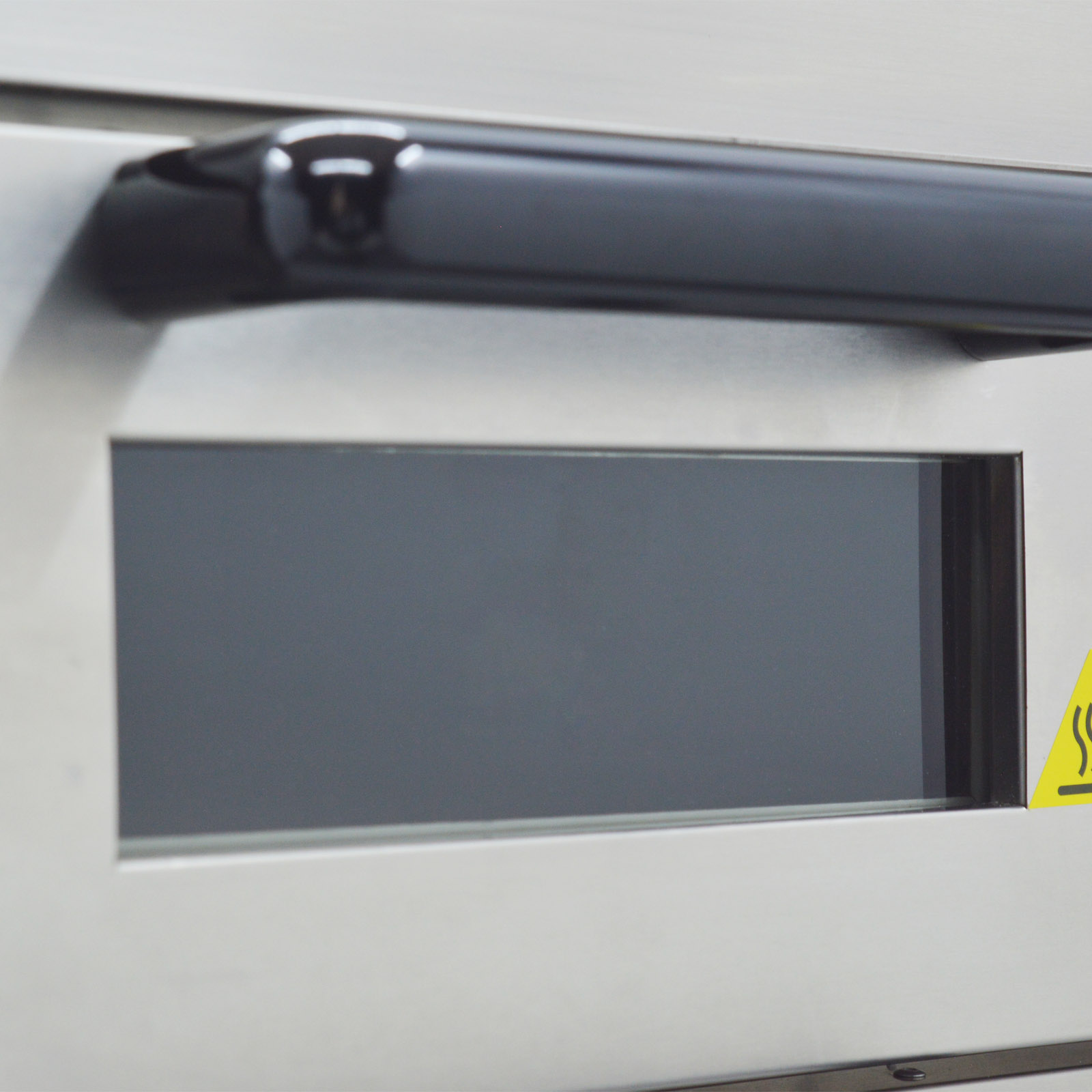 | Inside the oven is designed with high temperature resistant and explosion-proof independent floodlight, which is convenient to observe the state of food in the oven during heating. | There are four rubber support pads at the bottom of the machine, which can play a good support, anti-slip and waterproof role, so that oven work more stable and safe. | A total of 3 layers of multi-ring heating tube design, covering a wide area, can achieve the effect of rapid heating three heating pipe do not interfere with each other, improve work efficiency. | Both the upper and lower floors have visual Windows made of heat-resistant transparent glass, which can clearly observe the state of the food inside the oven with lighting. |