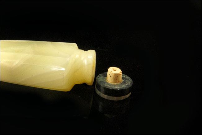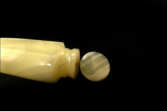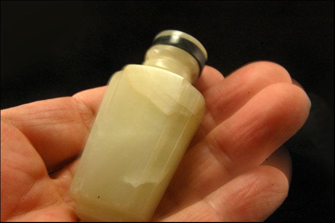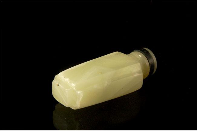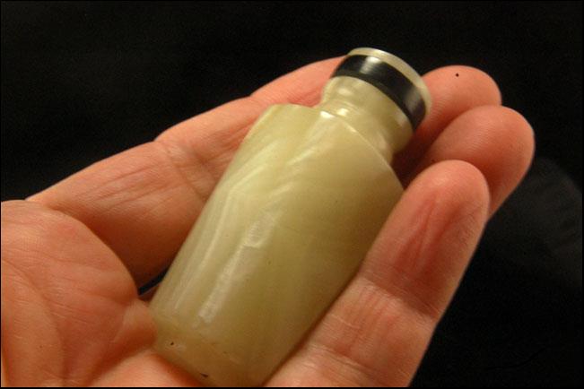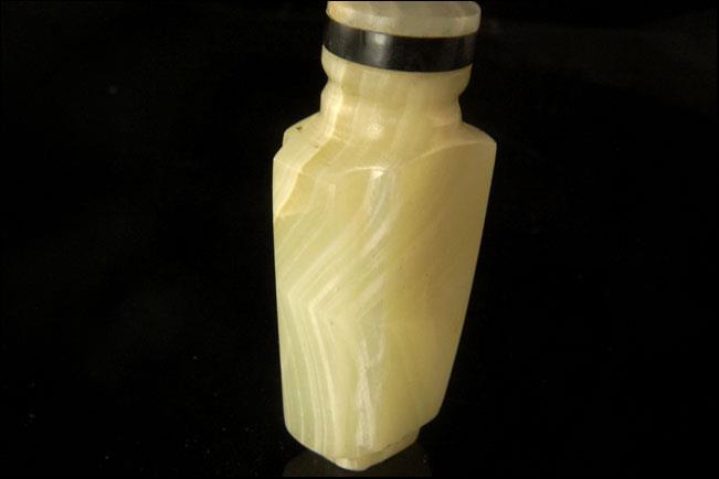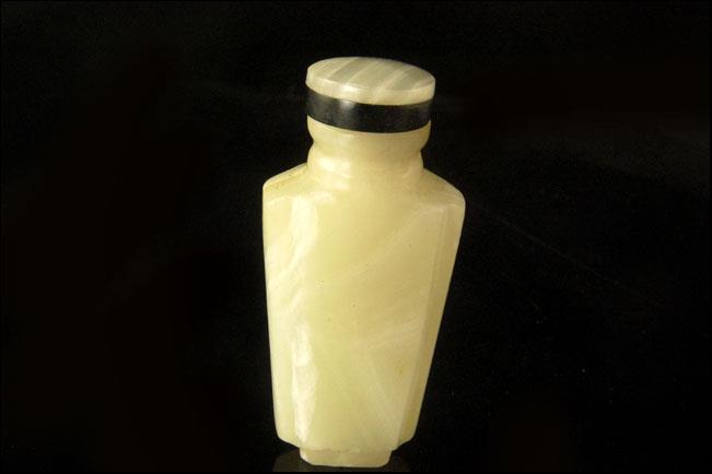 This is a very beautiful, vintage and unique CHINESE AGATE c, 1940 snuff bottle (weight 47.50g). The bottle has white-light gree color agate with stopper. The bottle has a very antiquated and exquisite feel to it. It measures 2 1/4" x 1"x 3/4". The bottle is in very good condition,.