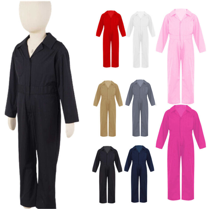 Boys Girls Long Sleeve Mechanic Coveralls Jumpsuit Dance Performance Costume