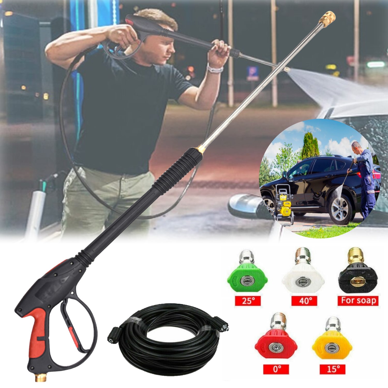 Great for washing cars, washing motorcycle,watering plants and trees,cleaning bathroom, kitchen, balcony, corridor, carpet, etc. This nozzle not only looks great but is built to lastest. Much more durable than other similar plastic nozzless. Designed with high pressure performance. (Cold water use only).