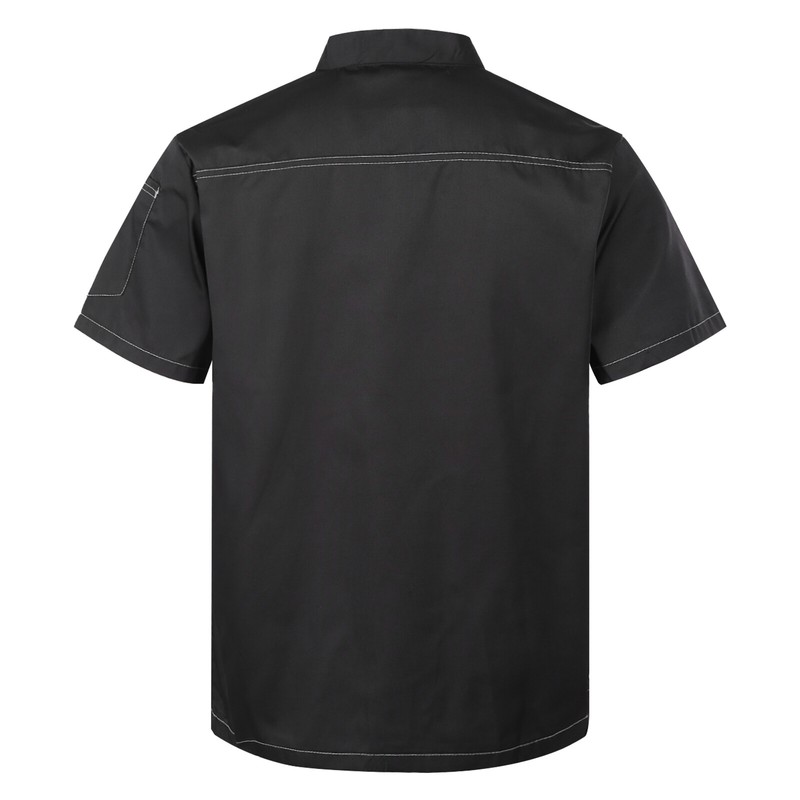 The sides of the short sleeve jacket has breathable mesh, keeps you cool in the hot kitchen. Designed with sleeve pockets, can be used to place pens and thermometers