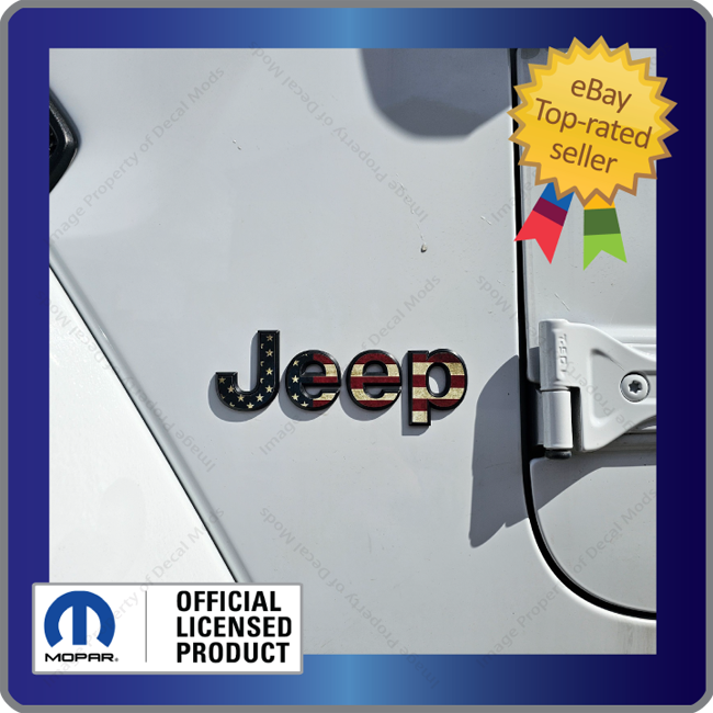 This set includes the following: - Set of JL Wrangler Side Fender Overlay Letters for Both Sides (Part number: FJ9M3 ) - Decals are in the color: Distressed USA American Flag - Installation Instructions |