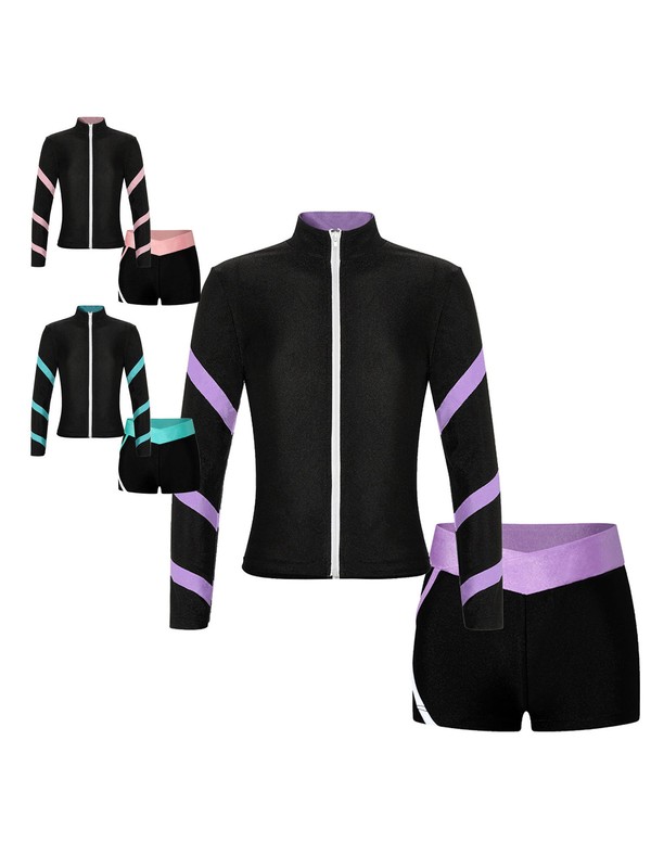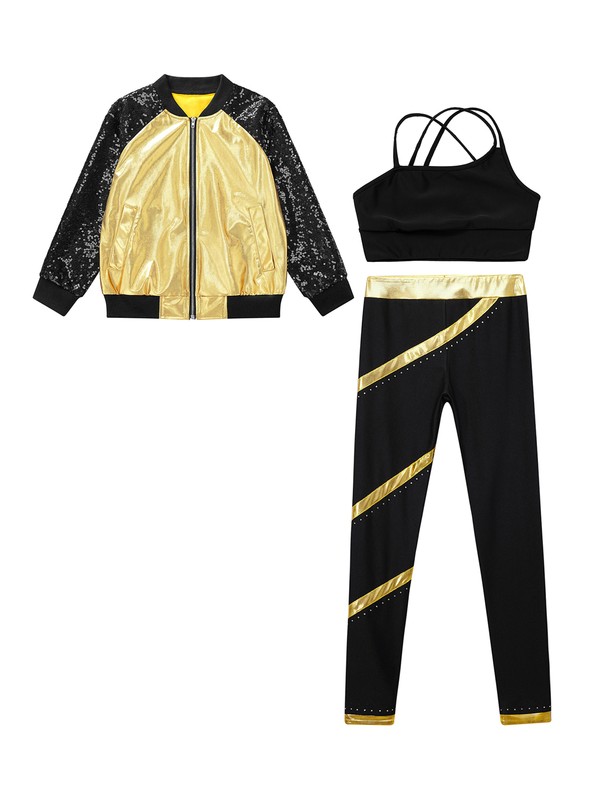 Kids Girls Shiny Sequins Long Sleeve V Stand Collar Zipper Closure Front Bronzing Cloth Jacket Outerwear.