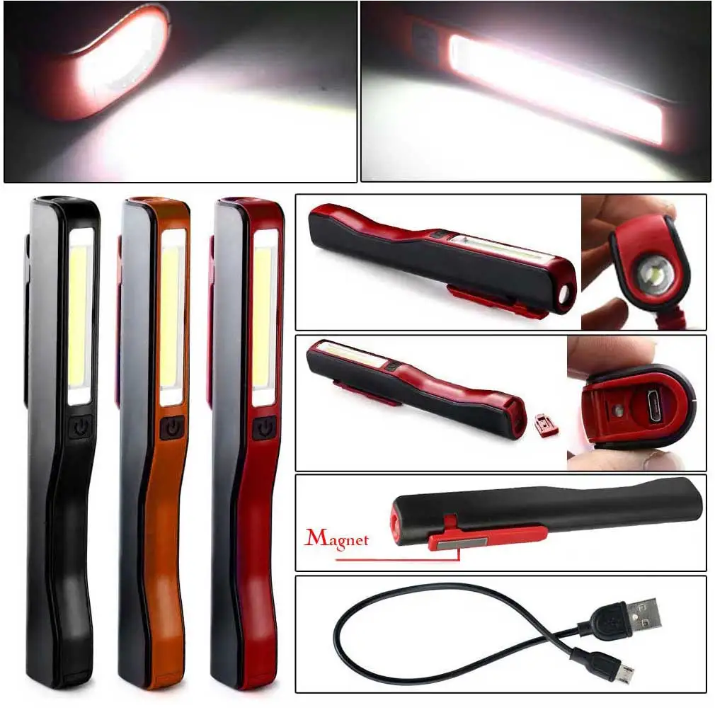 New Portable COB LED Rechargeable Magnetic Pen Clip Hand Torch Work Light