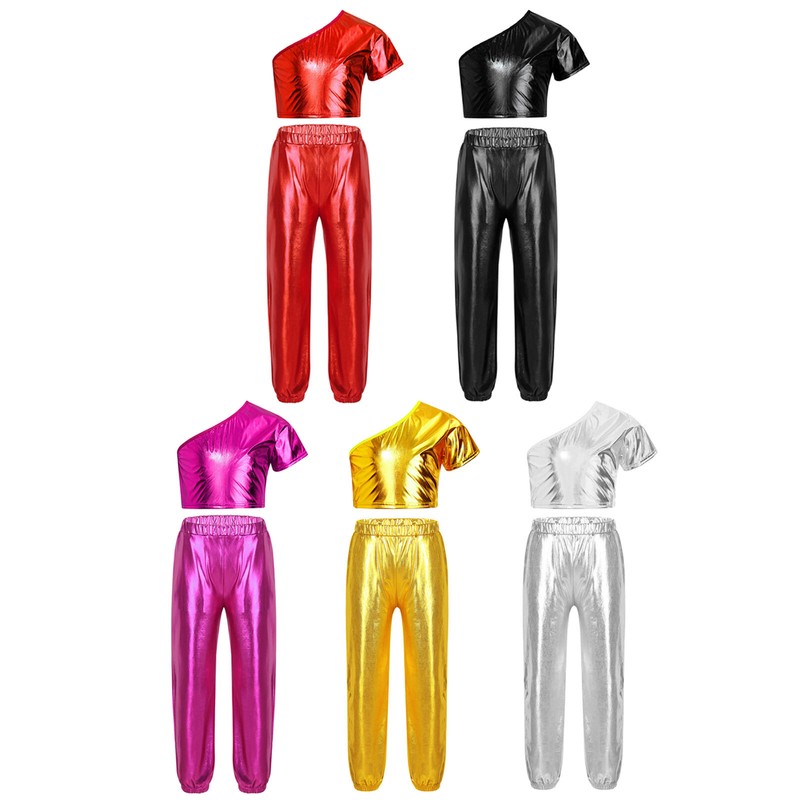 Kids Girls Set Mesh Suit Metallic Outfits Figure Costume Long Sleeve DancewearUSD 7.99
