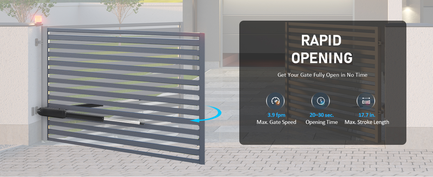 Built to Withstand Any Weather: Our gate opening system is engineered to resist rain, dust, and dirt with its solid construction and IP44 casing, and can withstand extreme weather conditions from -4°F to 158°
