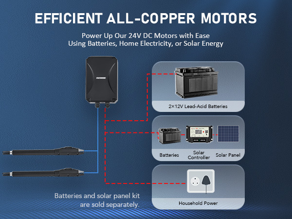 Designed for Lasting Service: Featuring powerful all-copper motors, aluminum actuators, and a durable ABS casing, our dual gate opener provides years of dependable service without jamming