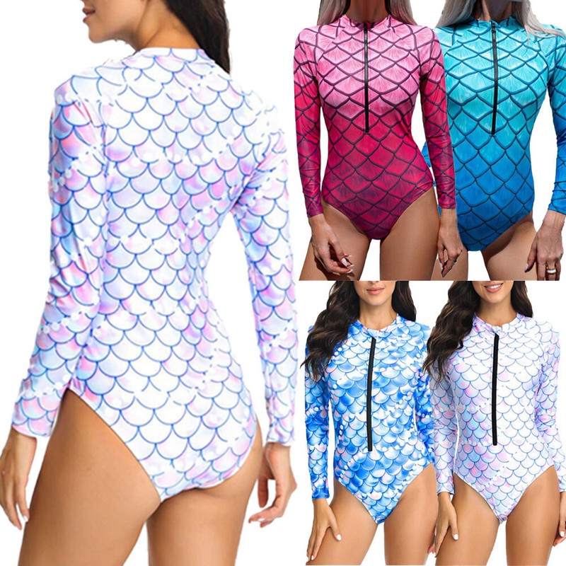 Womens Mermaid Print Surfing Swimwear One Piece Swimsuit Long Sleeve Rash GuardUSD 8.19