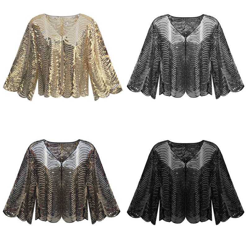 Womens Cardigan Flare Sleeve Shawl 1920s Wraps Casual Tops Waved Trim Crop TopUSD 10.99