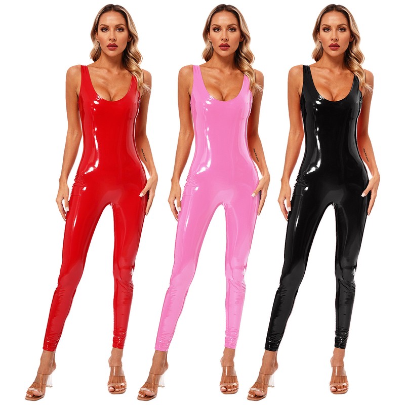 Womens Bodysuit Dating Night Catsuit Skinny Jumpsuit Glossy Clubwear One PieceUSD 7.99