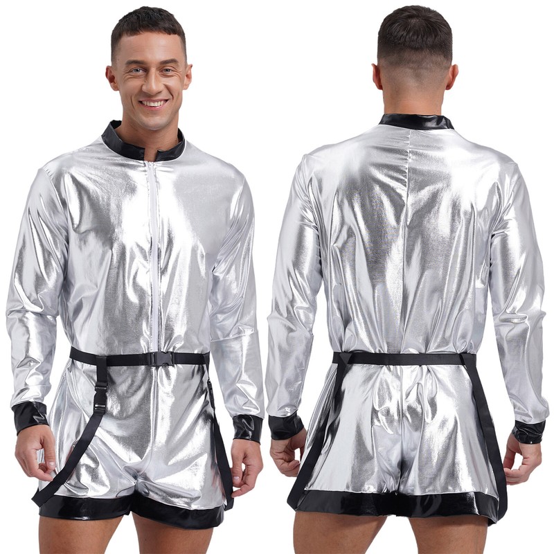 Mens Leotard Metallic Spaceman Adult Bodysuit Performance Costume Romper PartyUSD 7.99