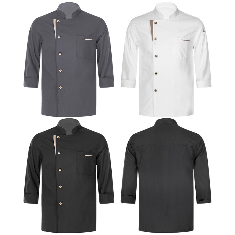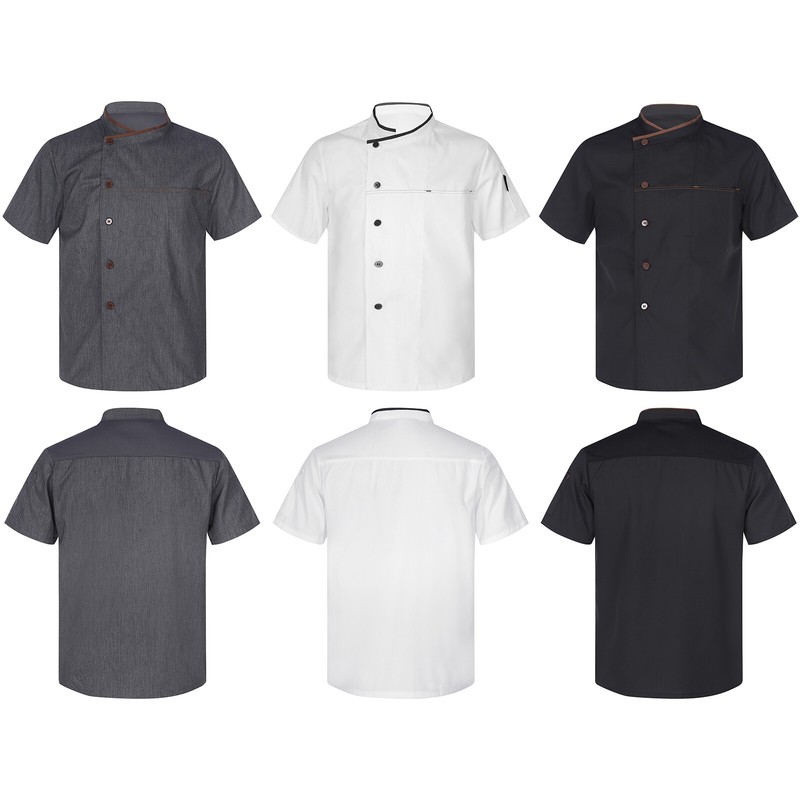 Mens Chef Baking Coat Hotel Tops Uniform Shirt Kitchen Cooking Collar ButtonUSD 8.99