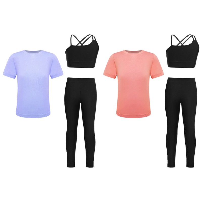 Kids Girls Shirts With Crop Tops And Pants Swimwear Sportswear Solid Color GymUSD 8.99