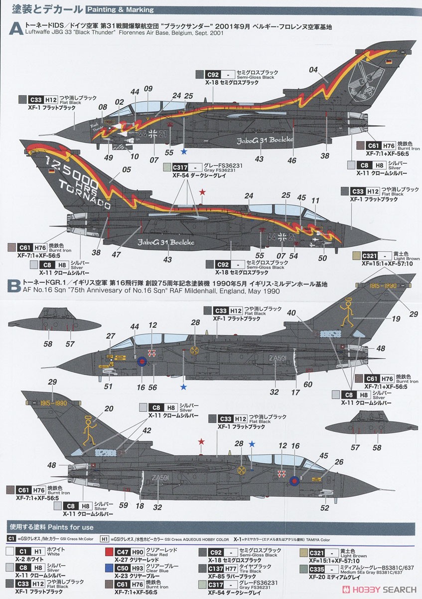 - The cockpit has been faithfully recreated, and figures of two crew members are also included. Two types of special coating machines are available for marking. One was produced in 2001 to commemorate the 125,000 total flight hours achieved by aircraft belonging to the Luftwaffe's 31st Fighter Bomber Wing, and the other was produced in 1990 to commemorate the 75th anniversary of the founding of the Royal Air Force's 16th Squadron. This is a commemorative painting machine made to commemorate the occasion.