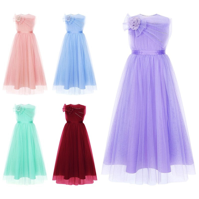 Kids Girls Ball Gown Celebration Dress Midi Flower Girl Graduation Costume PromUSD 8.99