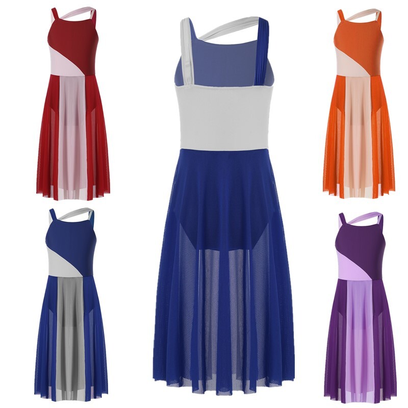 Girls Dresses Sleeveless Dress Contrast Color Gown Modern Costume Soft RobeUSD 8.49