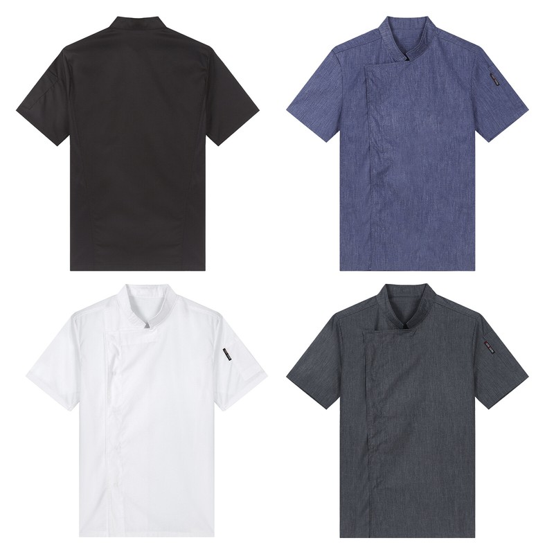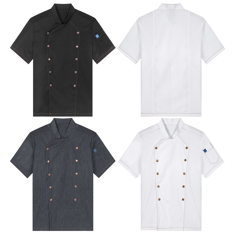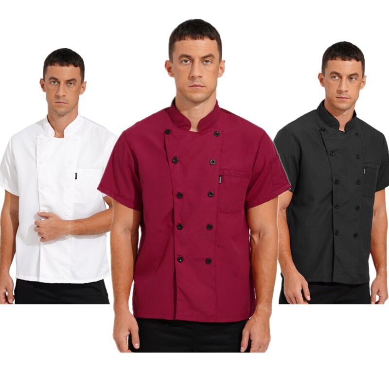Chef jacket for men and women, stand collar looks professional, buttons closure for easy wearing.
