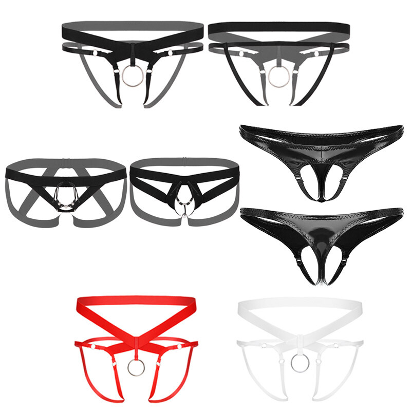 Men Crotchless Strappy Thongs O Ring Bead Decor G-string Low Rise Elastic Waistband T-back Underwear.