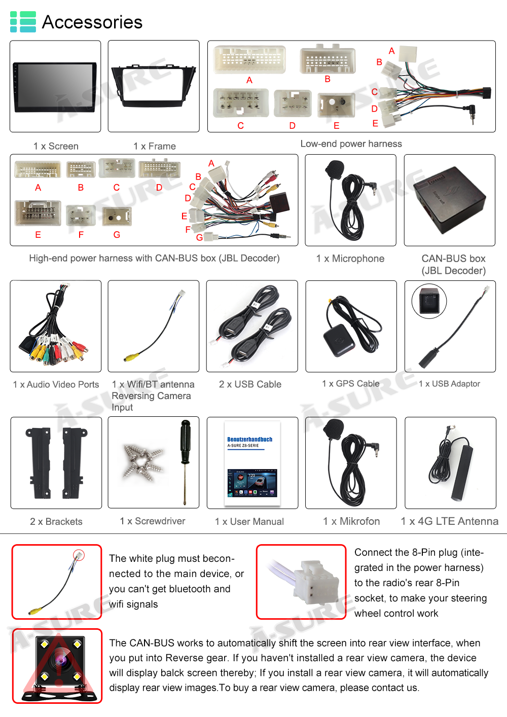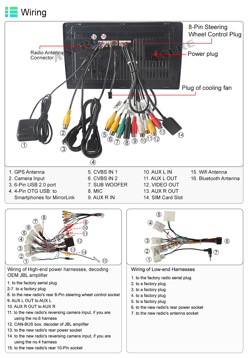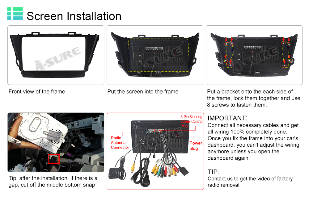Included Components: Wiring harness, Frame, Head unit
