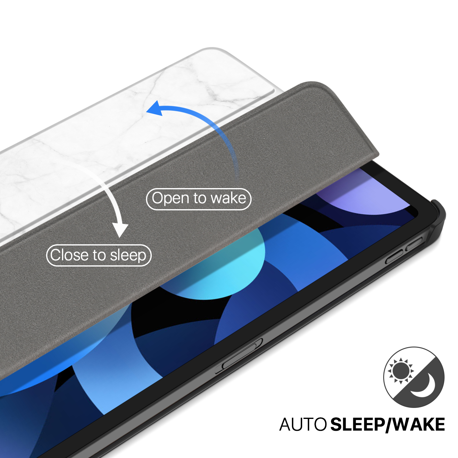 Slim, form-fitting cover to perfectly fit your iPad Air 4 Generation / iPad Air 5 Generation and provide full front and back protection. The cover is easy to securely attach and remove, and folds back for easy one-handed reading. It automatically puts your iPad Air to sleep when closed and wakes upon opening, making it easy to jump back into your book. Made of durable synthetic leather, this case is designed to be lightweight and protective, protect your device without adding unnecessary bulk, so you can hold it for hours of reading with minimal effort. With the nylon woven interior, the cover protects your iPad Air and keeps the screen clean without adding bulk, making it perfect for taking your iPad Air wherever you go.Feature: