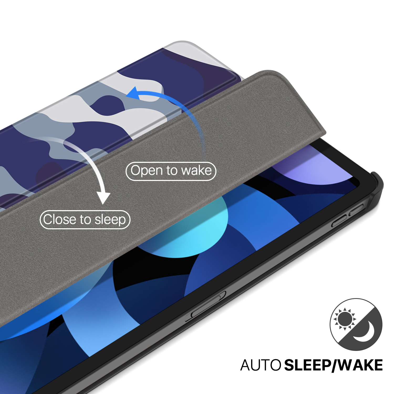 Slim, form-fitting cover to perfectly fit your iPad Air 4 Generation / iPad Air 5 Generation and provide full front and back protection. The cover is easy to securely attach and remove, and folds back for easy one-handed reading. It automatically puts your iPad Air to sleep when closed and wakes upon opening, making it easy to jump back into your book. Made of durable synthetic leather, this case is designed to be lightweight and protective, protect your device without adding unnecessary bulk, so you can hold it for hours of reading with minimal effort. With the nylon woven interior, the cover protects your iPad Air and keeps the screen clean without adding bulk, making it perfect for taking your iPad Air wherever you go.Feature: