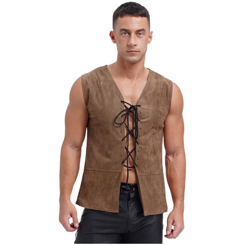 Designed with v neck, sleeveless, front lace-up and solid color, the vest in vintage style is perfect for cosplay and stage performance.