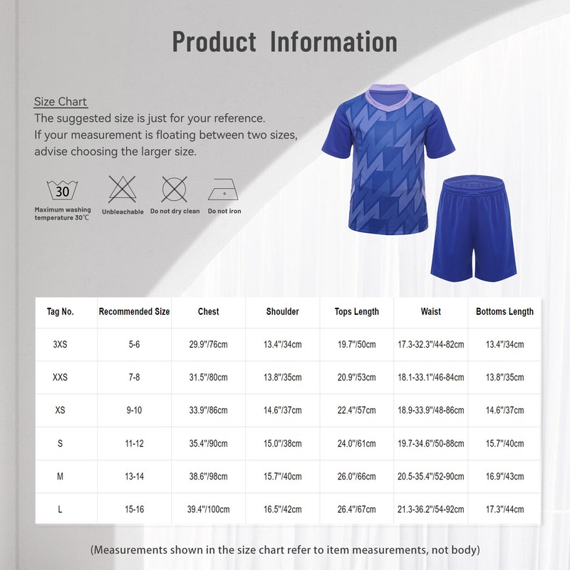 This soccer uniform set is machine washable, making it easy to clean and maintain even after a tough game or practice.