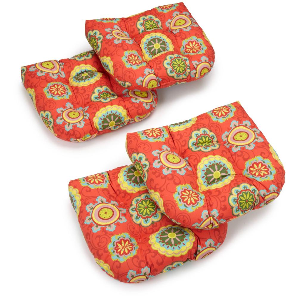 Add a splash of color and style to your home furnishings with these chair cushions. These cushions feature a classic tufted cushion design and available in a wide variety of colors of premium outdoor fabric. Includes four cushions.