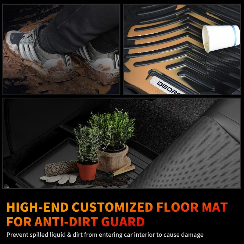 The Floor Mat Liners adopt 3D Scanning technology to keep it perfectly to fit the car. Made of friendly environmentally TPE material. Non-toxic and odorless, it won't release the toxic substances in summer and winter.