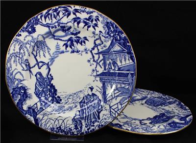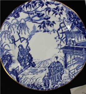 This vintage pattern was introduced by Royal Crown Derby in 1935 and is still in production. It features a blue Oriental scene on white with gold trim.