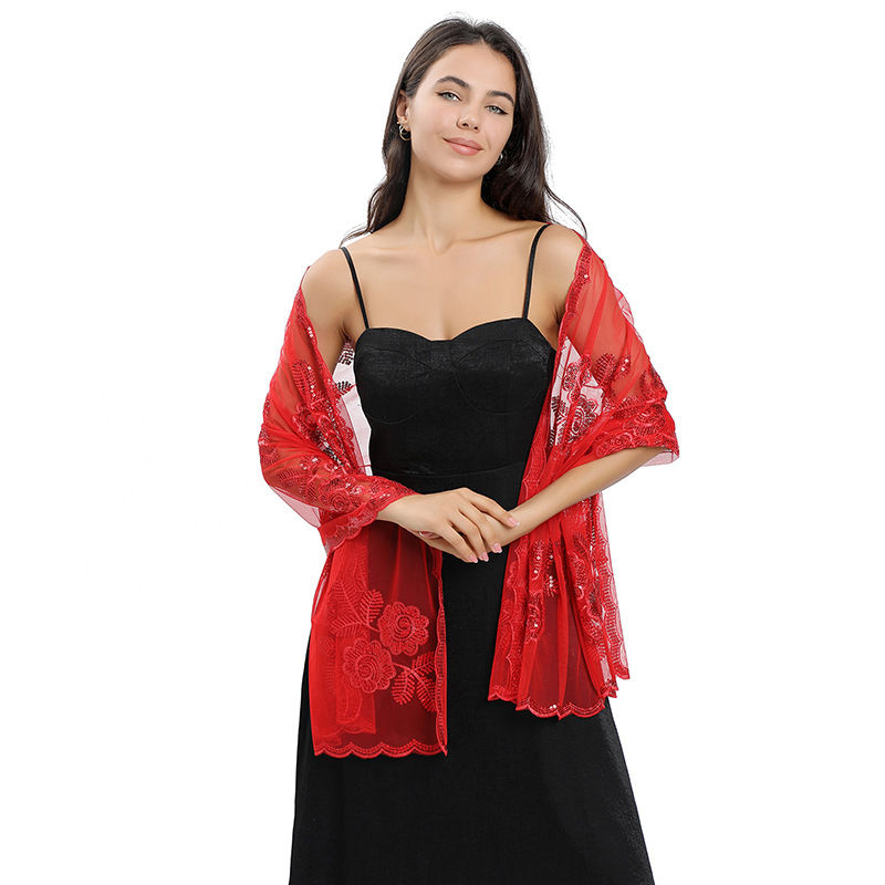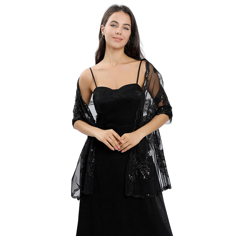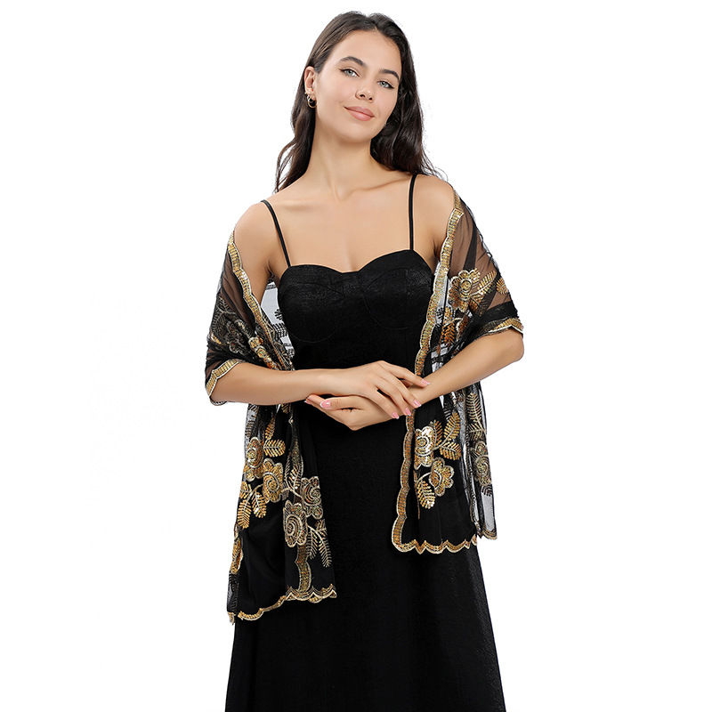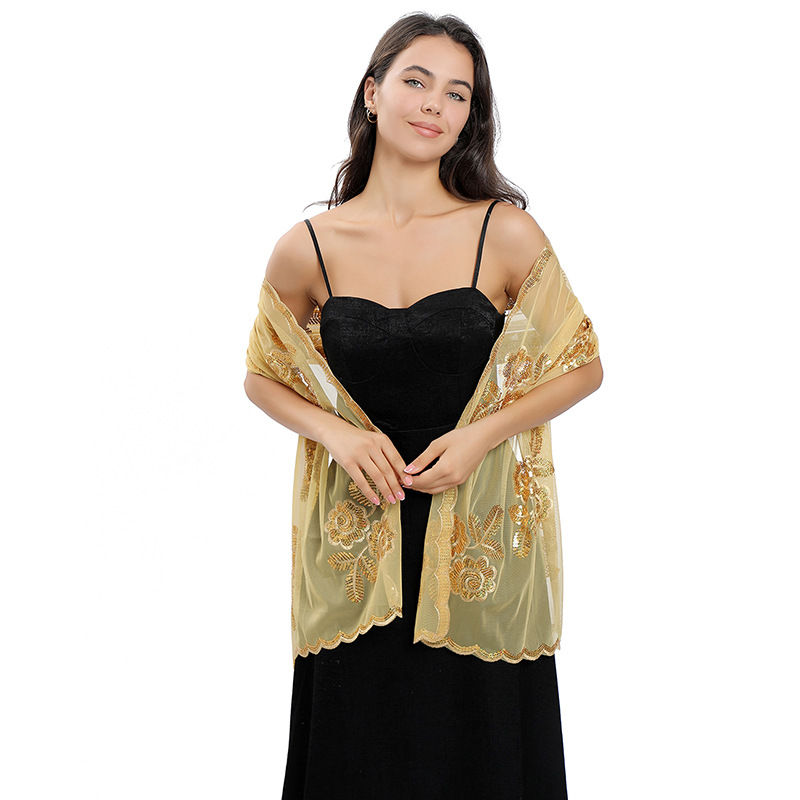 Material: Mesh base fabric+sequin embroidery