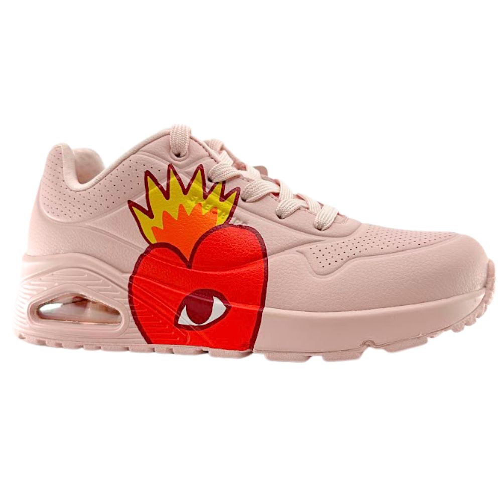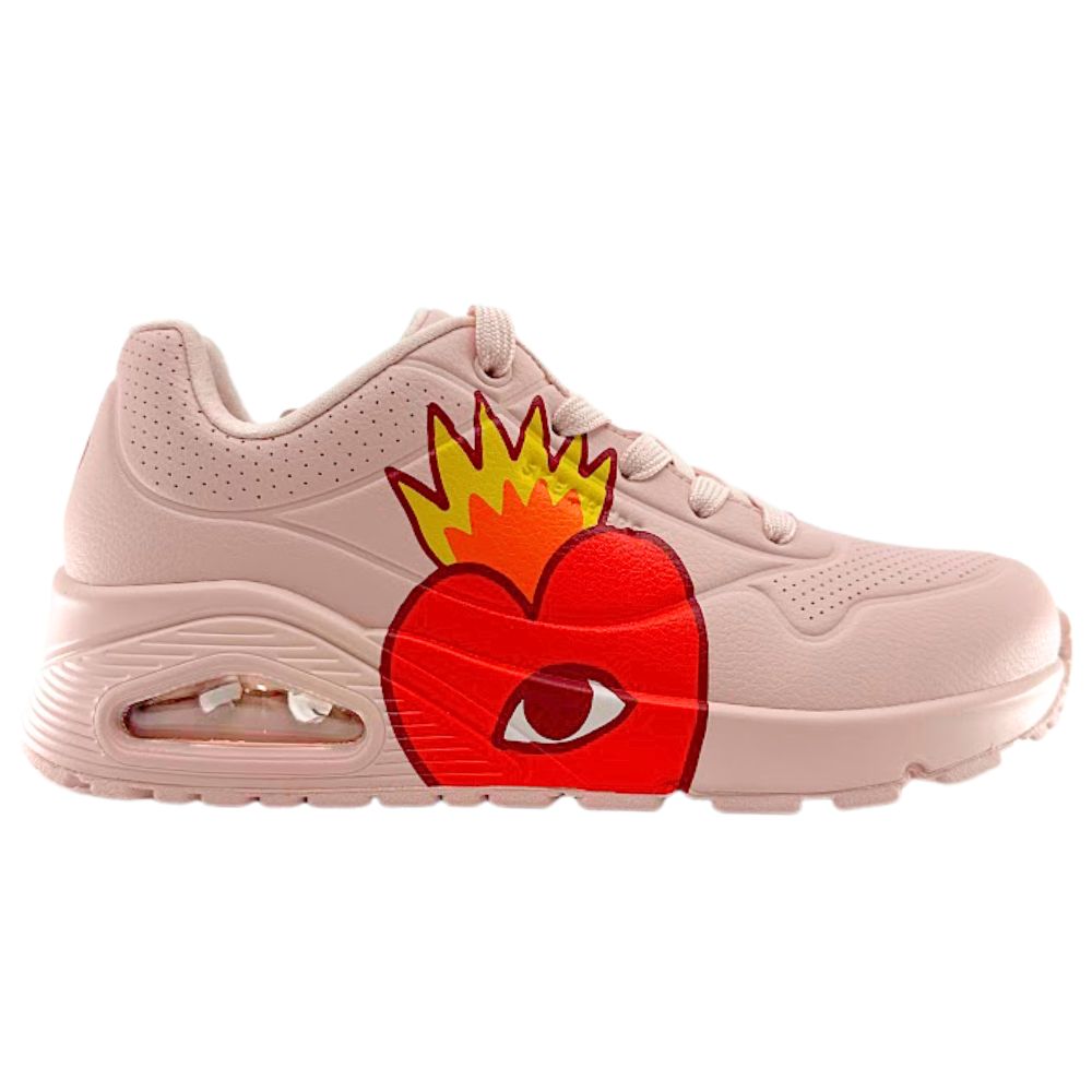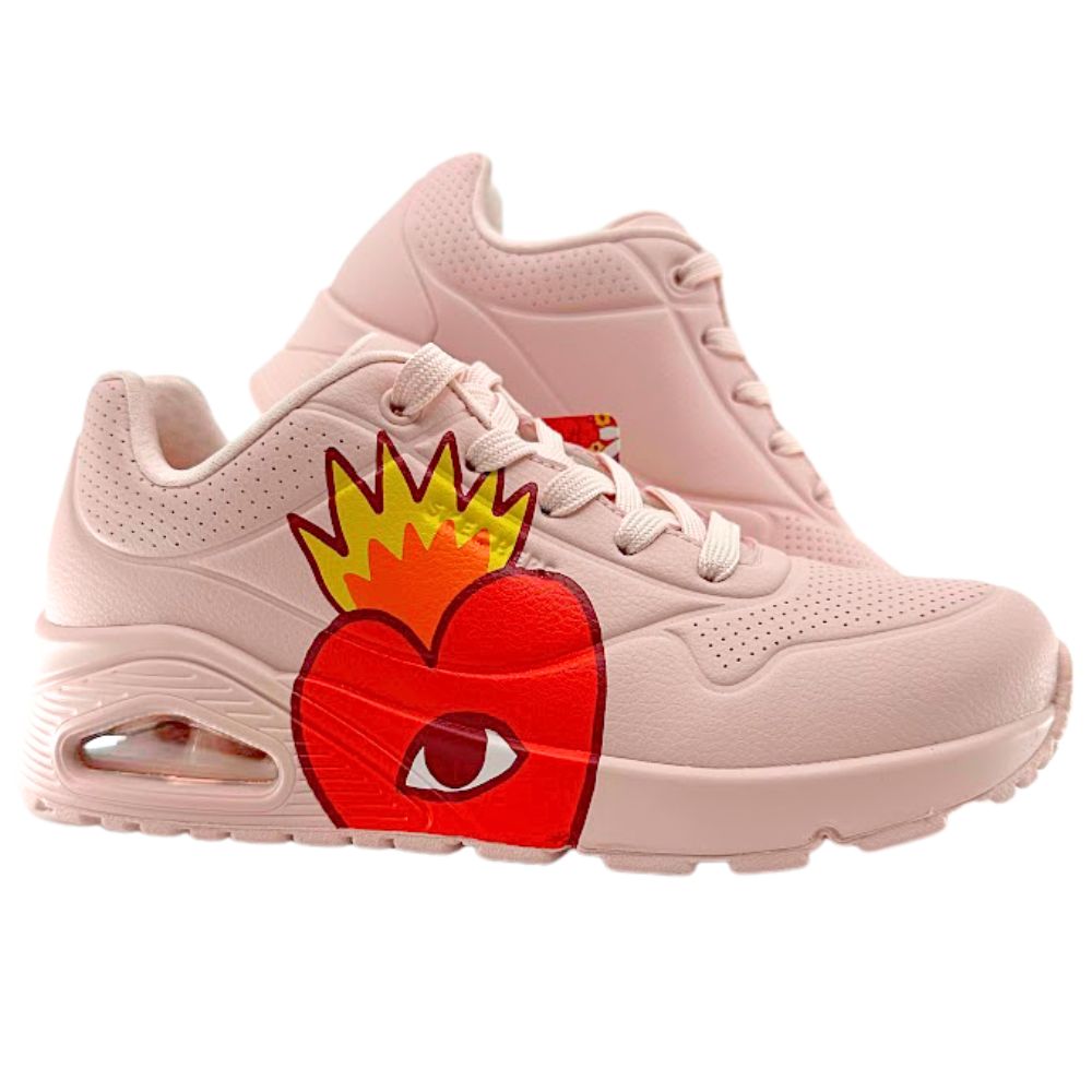 Thought-provoking artist, Ricardo Cavolo, uses symbolism as his story-telling language. Since childhood, he has been creating icons to express and amplify emotions like Love, Empathy, and Hope. Travel on your path with the meaningful collection of Skechers Street x Ricardo Cavolo. The Uno - Flaming Heart fashion sneaker features a synthetic durabuck upper with Cavolo's iconic 'Flaming Heart' illustration, a Skechers Air-Cooled Memory Foam insole and a visible Skech-Air air-cushioned midsole.