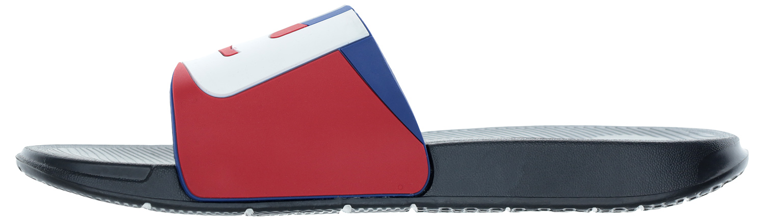 Whether you're walking around the house, in the park, or to your favorite seat in the stadium ready to cheer your team on to victory, do it in style by rocking these Big Logo Raised Slides! Listed in Men's sizing but are unisex.