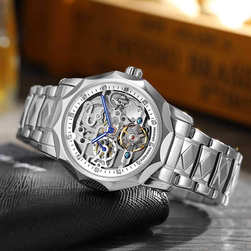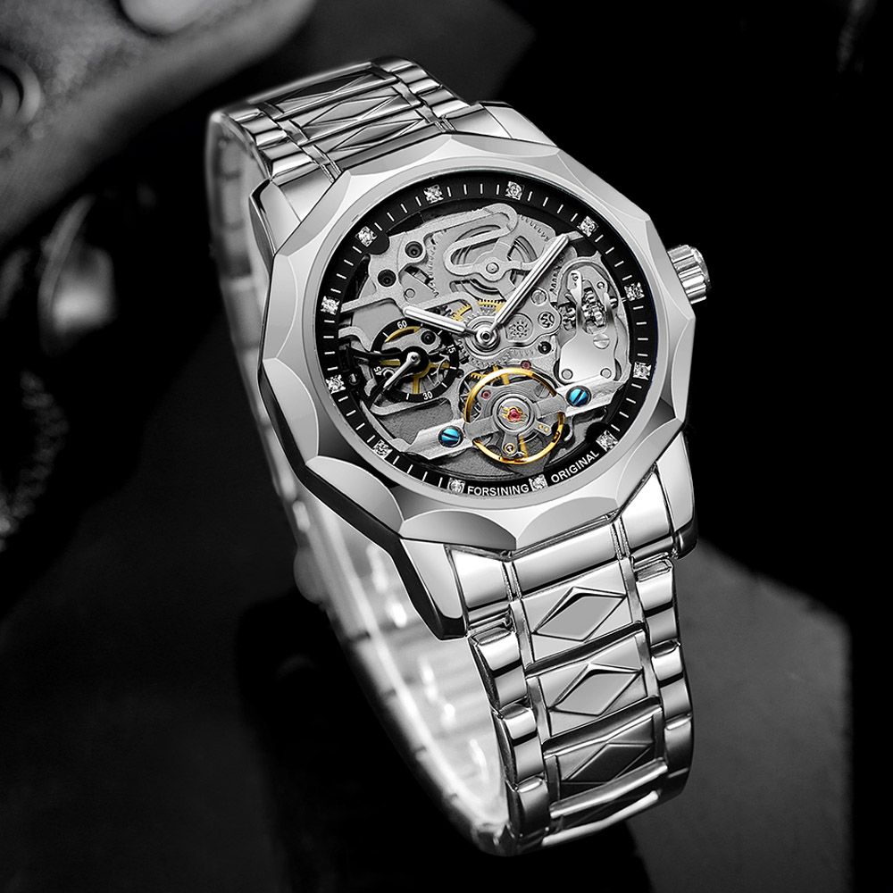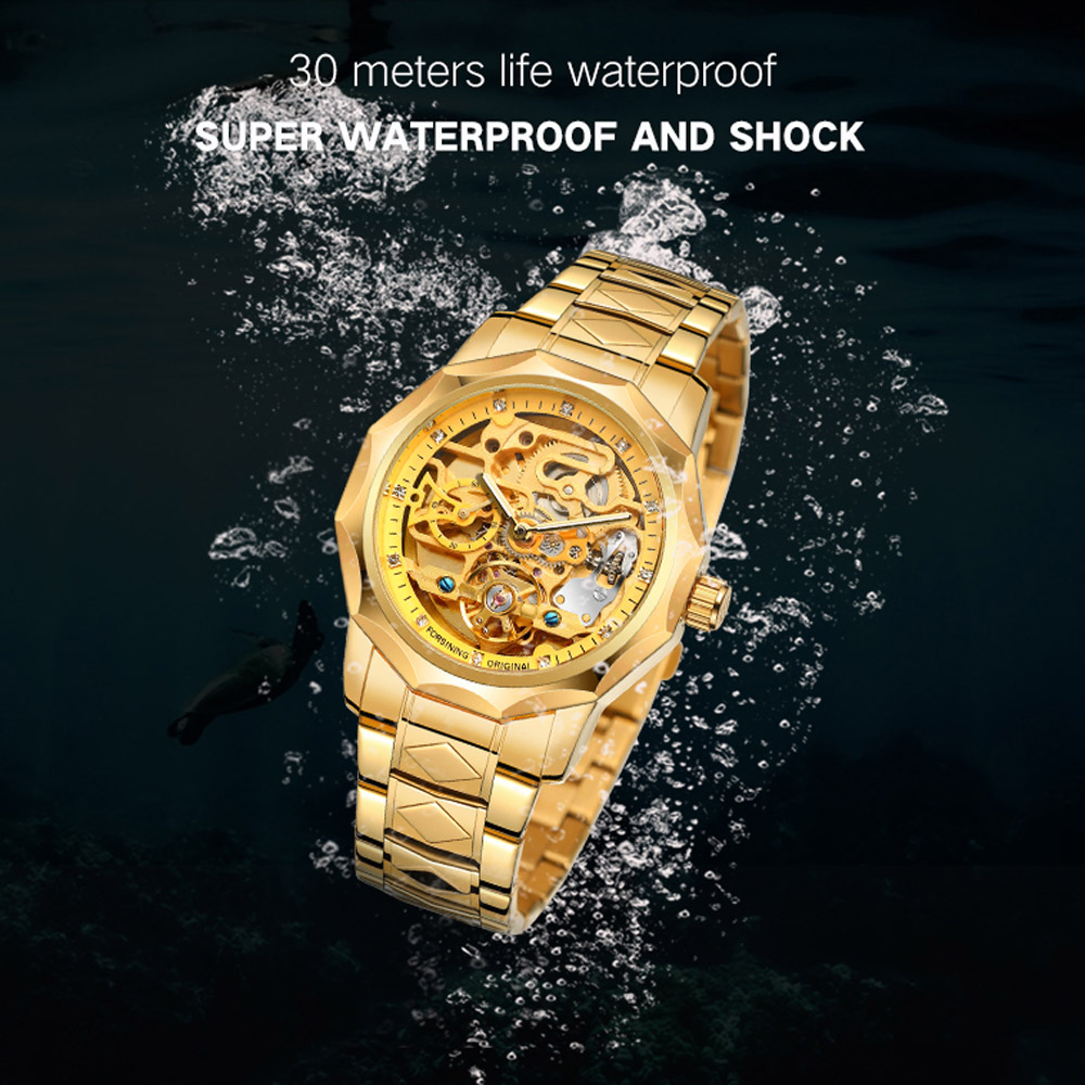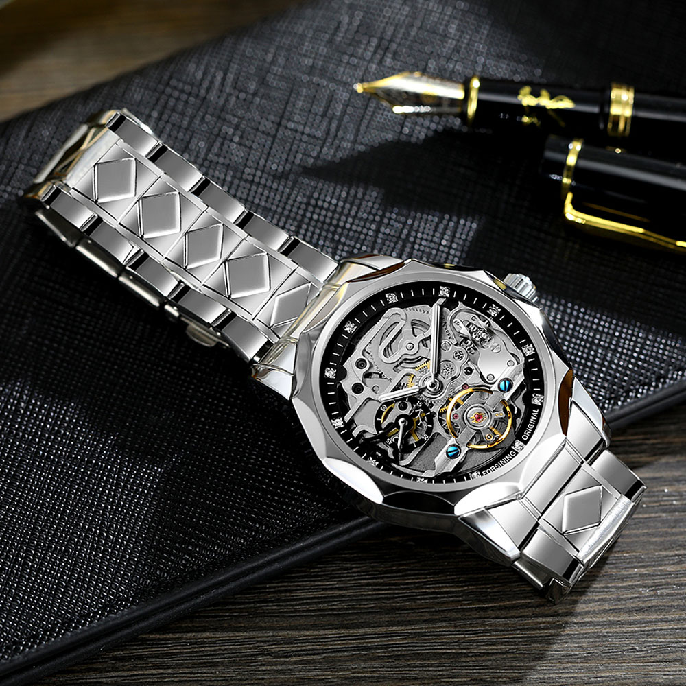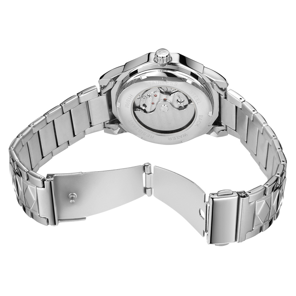 - Designed by renowned Forsining Watch Maker.It is another amazing design from his designing team. - Precise Automatic Mechanical Movement with the latest break through, Precise time and keep good time. - Specially designed stainless steel case and high quality stainless steel watch band. - Composed with Tiny Equipment Composing Technology from Forsining watch manufacturing. - 3ATM daily water resistant structure (Not suitable for swimming, diving, shower etc.). - Fashionable,amazing looking watch,very charming for all occasions. Specification(approx): Case thickness: 14.0 mm Case Diameter: 42.0 mm Band Length: 220.0 mm Band width: 20.0 mm Band Material: Stainless Steel Movement: Automatic Mechanical Clasp: Folding Buckile Weight: 142g Glass: Hardlex Waterproof: 3ATM Package Included: 1 x Watch