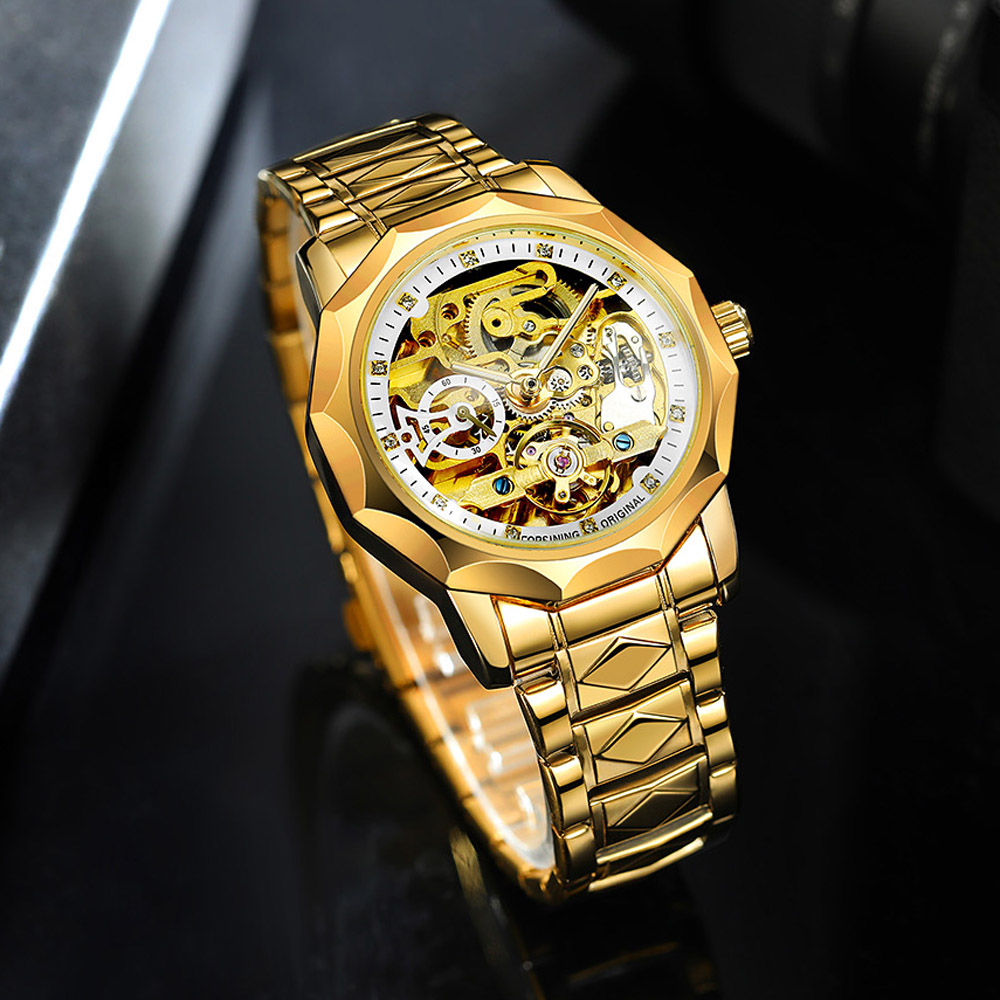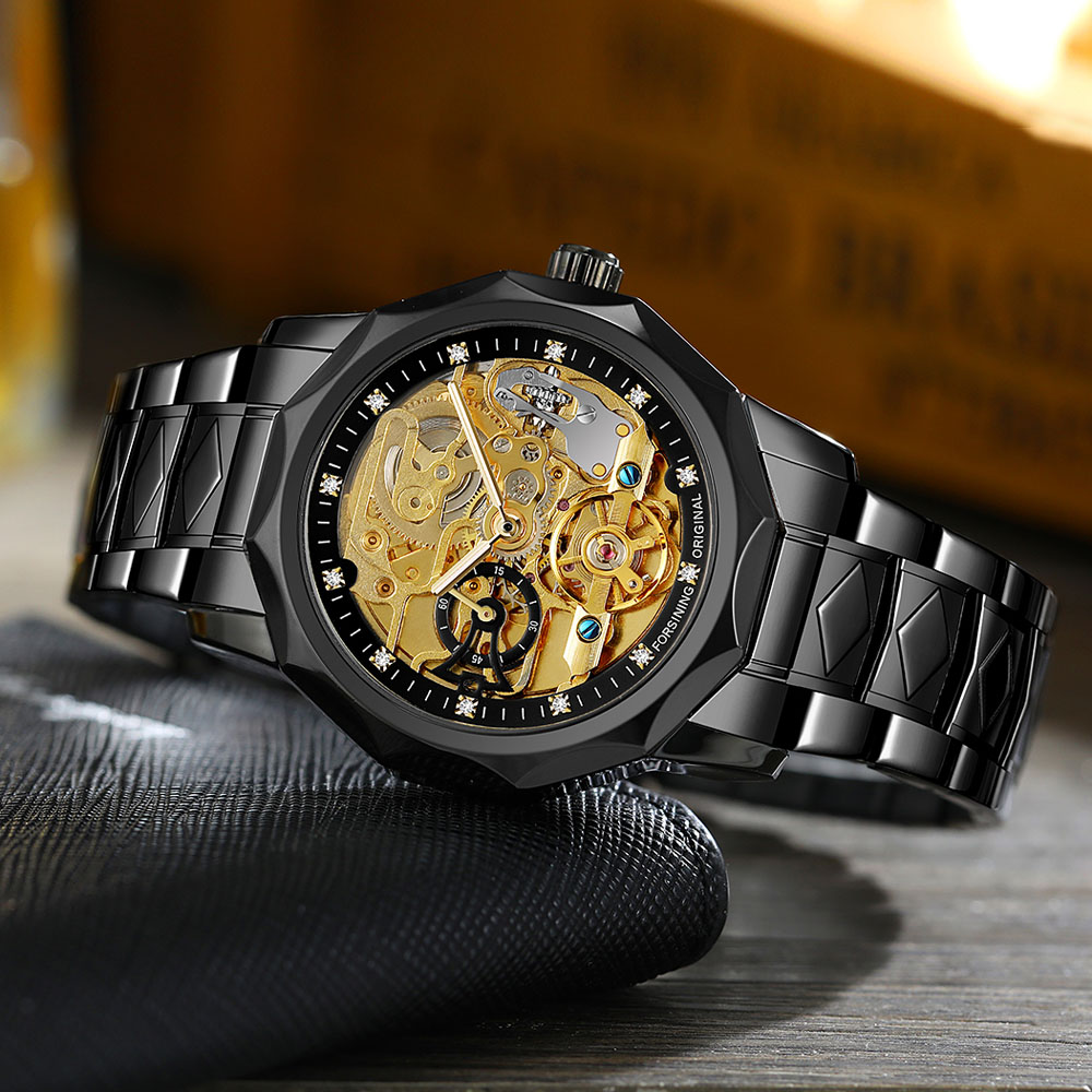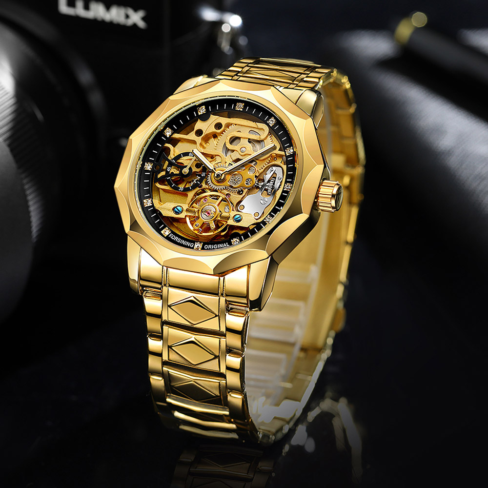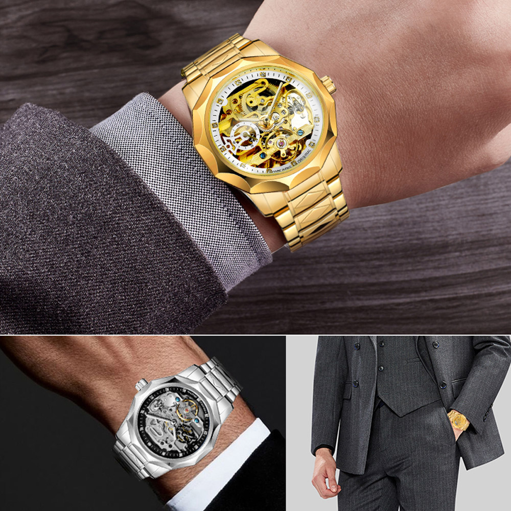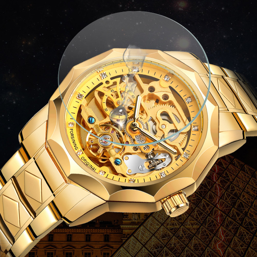 - Designed by renowned Forsining Watch Maker.It is another amazing design from his designing team. - Precise Automatic Mechanical Movement with the latest break through, Precise time and keep good time. - Specially designed stainless steel case and high quality stainless steel watch band. - Composed with Tiny Equipment Composing Technology from Forsining watch manufacturing. - 3ATM daily water resistant structure (Not suitable for swimming, diving, shower etc.). - Fashionable,amazing looking watch,very charming for all occasions. Specification(approx): Case thickness: 14.0 mm Case Diameter: 42.0 mm Band Length: 220.0 mm Band width: 20.0 mm Band Material: Stainless Steel Movement: Automatic Mechanical Clasp: Folding Buckile Weight: 142g Glass: Hardlex Waterproof: 3ATM Package Included: 1 x Watch