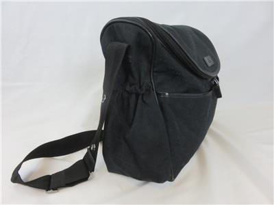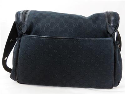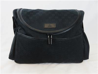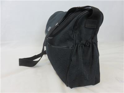 We are offering a beautiful Gucci GG black diaper nappy baby changing bag with mat. It is crafted from black GG logo canvas with black leather trim and features multiple pockets including front and back external pockets, side ruched pockets and an interior pocket for lots of storage. Canvas.