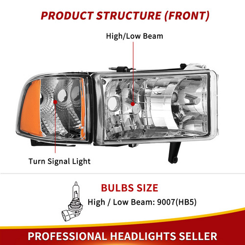 - High Beam / Low Beam Bulb Type: HB5 (9007) (Bulbs Not included)