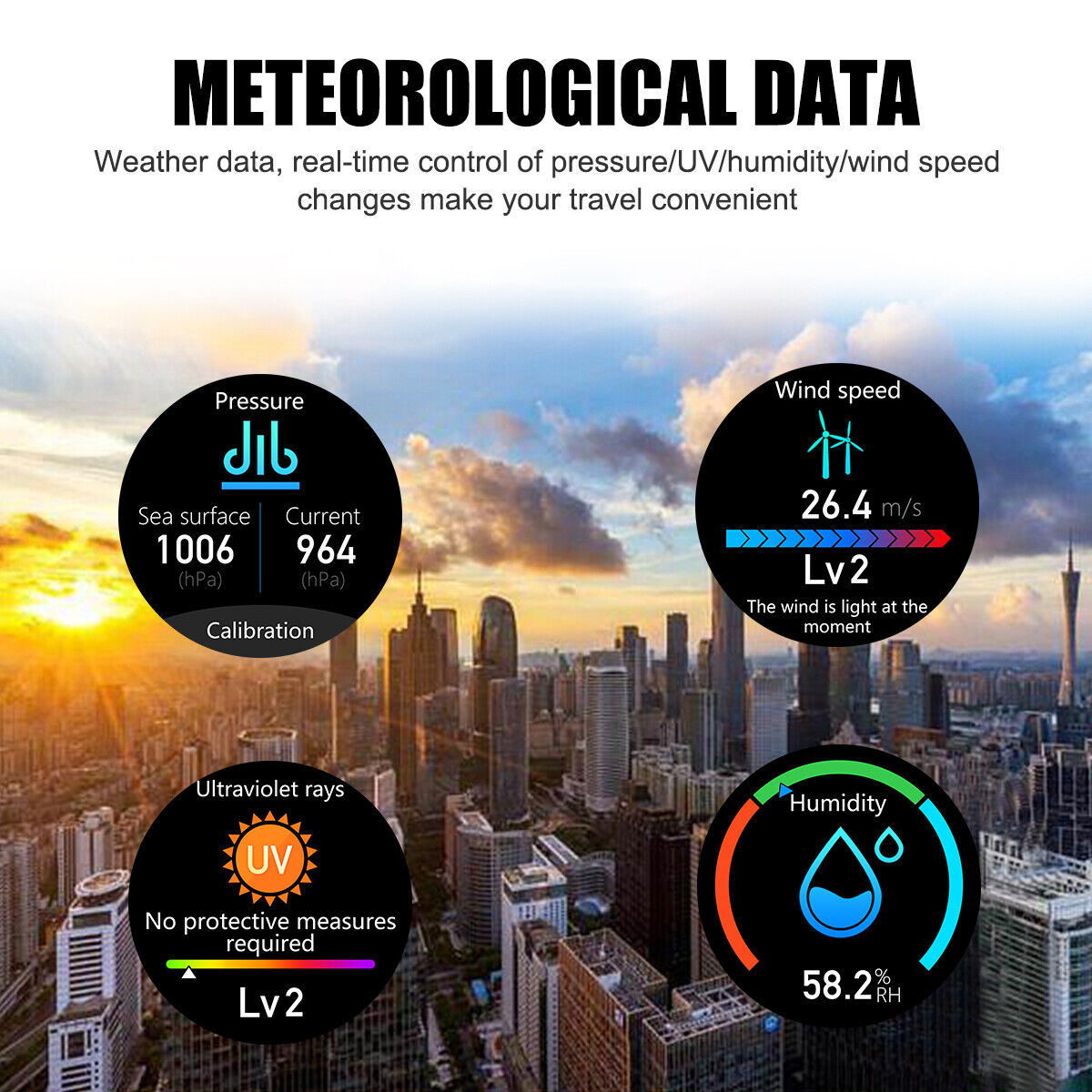 1. Meteorological data (pressure/UV/humidity/wind speed 4 functions)